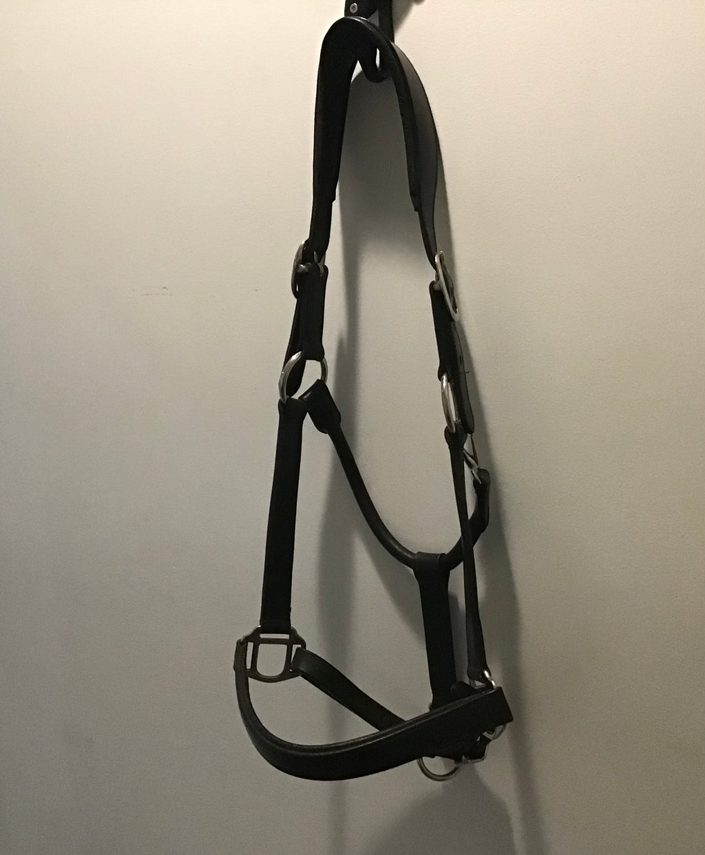 Ergonomic crown piece, adjustable around nose, buckle at throat latch