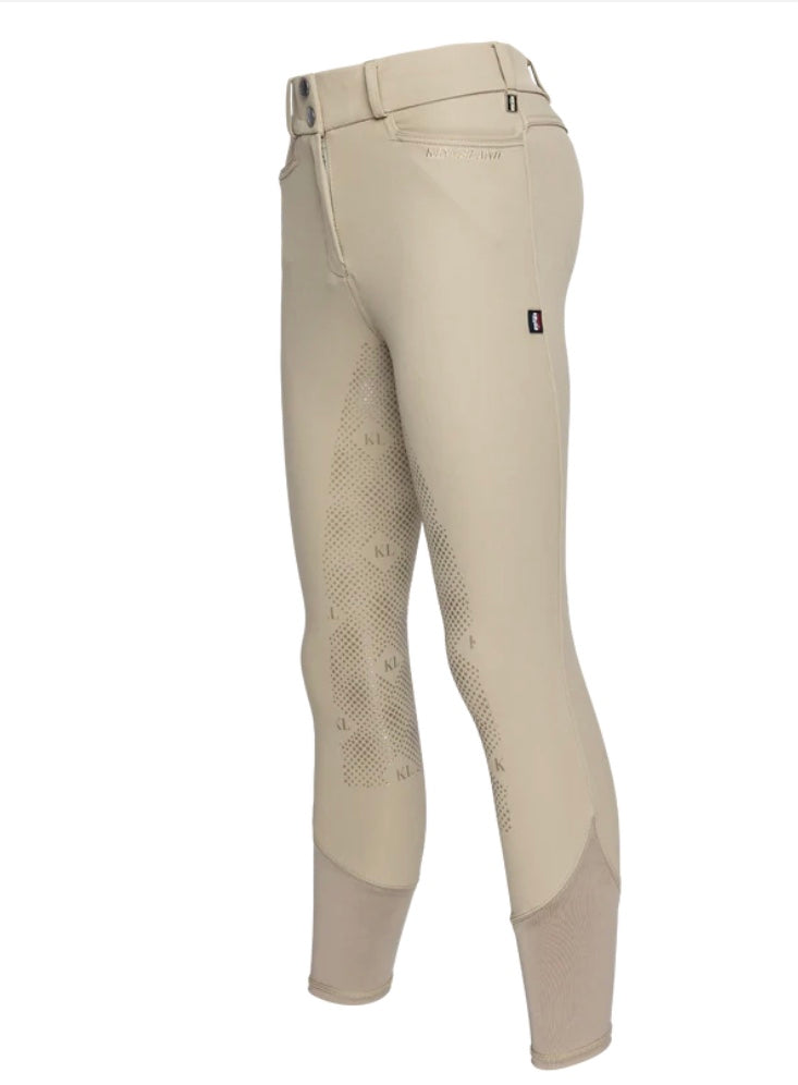 These Classic KL Kadi Full-Grip Breeches are made with breathable and durable fabric that is also water- and dust-repellent. This means you can stay focused on your ride, no matter the weather conditions. The 4-way stretch and Lycra lower calf provide freedom of movement, making them easy to put on and take off. The high and wide waistband highlights your figure, while the elegant design details give you a stylish and professional look.